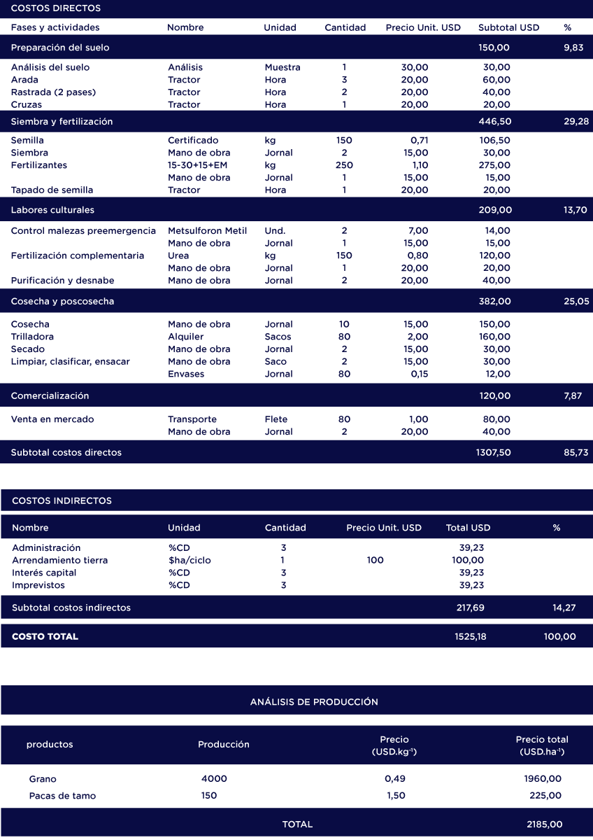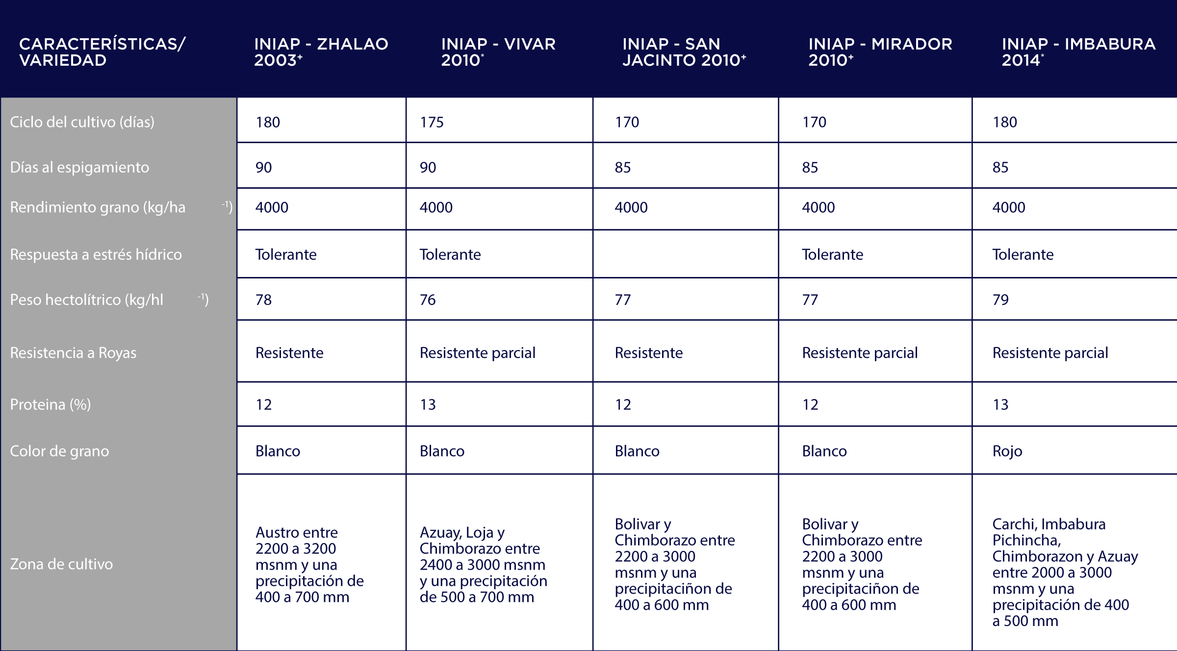 Zonas de producción en el país: Callejón interandino en las provincias de Imbabura, Pichincha, Chimborazo, Bolívar, Cañar y Loja registran el mayor aporte de grano de molienda y mayor superficie sembrada